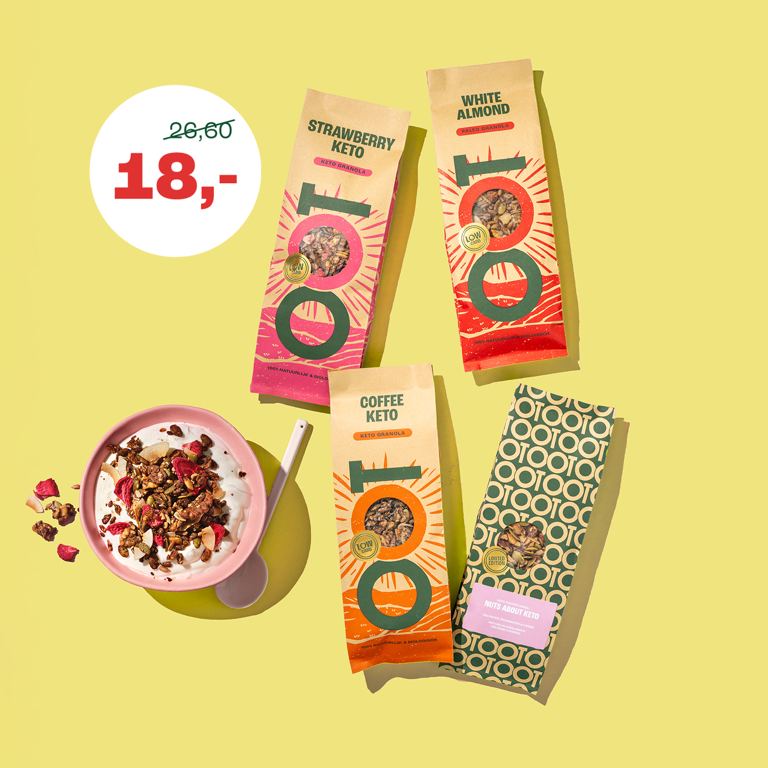 Tot 95% minder suikers dan de gemiddelde supermarktgranola